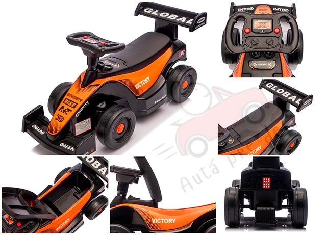 sedadlo: rozmery: 23,5 cm x 13 cm maximálne zaťaženie: do 20 kg, sedadlo a kolesá sú plastové svietiace svetlomety, melódie na volante, sedadlo s operadlom, ochrana proti prevráteniu |