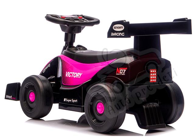 sedadlo: rozmery: 23,5 cm x 13 cm maximálne zaťaženie: do 20 kg, sedadlo a kolesá sú plastové svietiace svetlomety, melódie na volante, sedadlo s operadlom, ochrana proti prevráteniu |